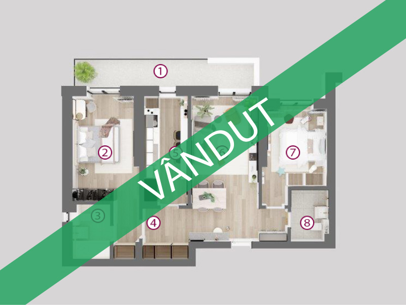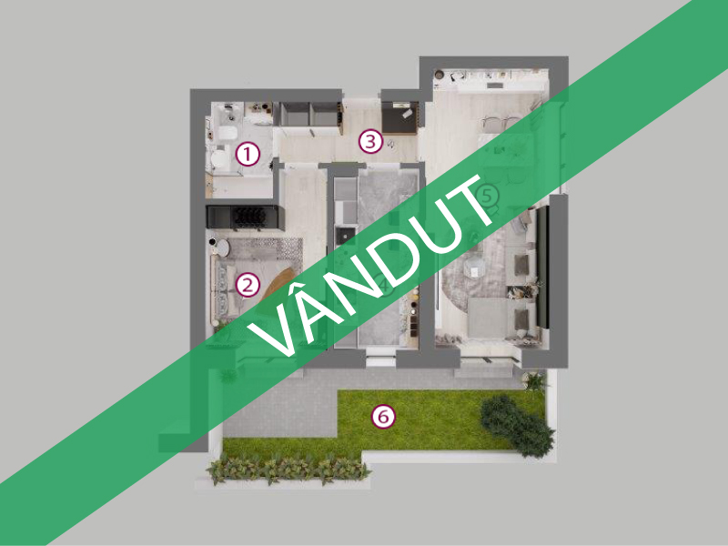 Suprafață utilă 55,77 mp | Terasă+grădină 28,4 mp | Preț (fără TVA): Vândut