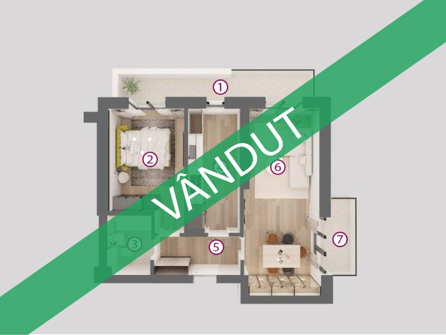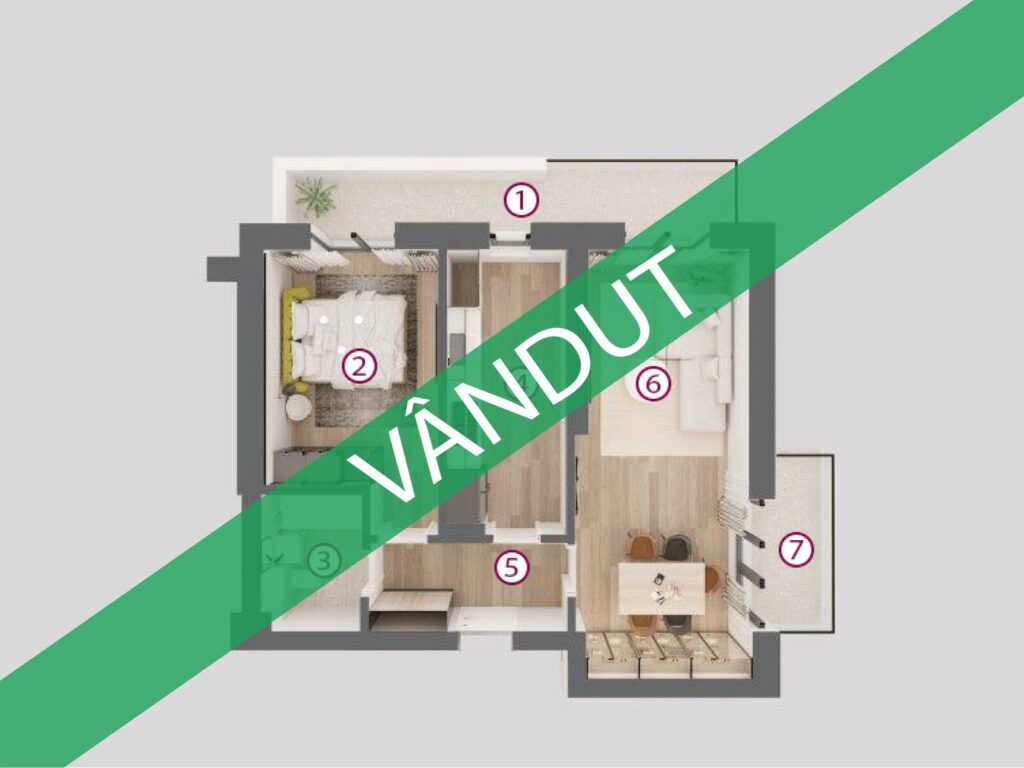 Suprafață utilă Vândut | Balcon 7,03 mp | Preț (fără TVA): Vândut