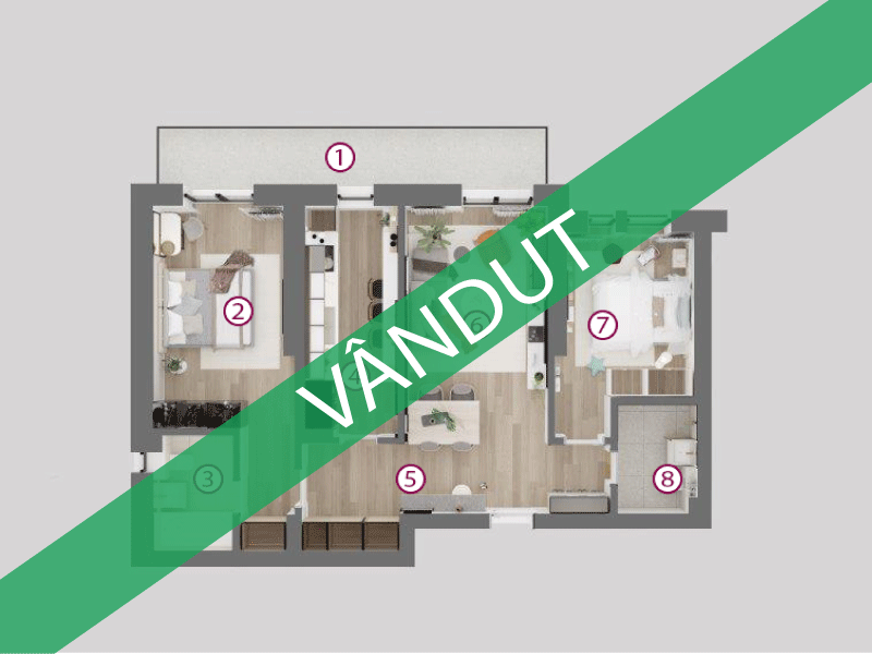 Suprafață: 61,06 mp | 2 balcoane: 15,4 mp | Preț (fără TVA): Vândut